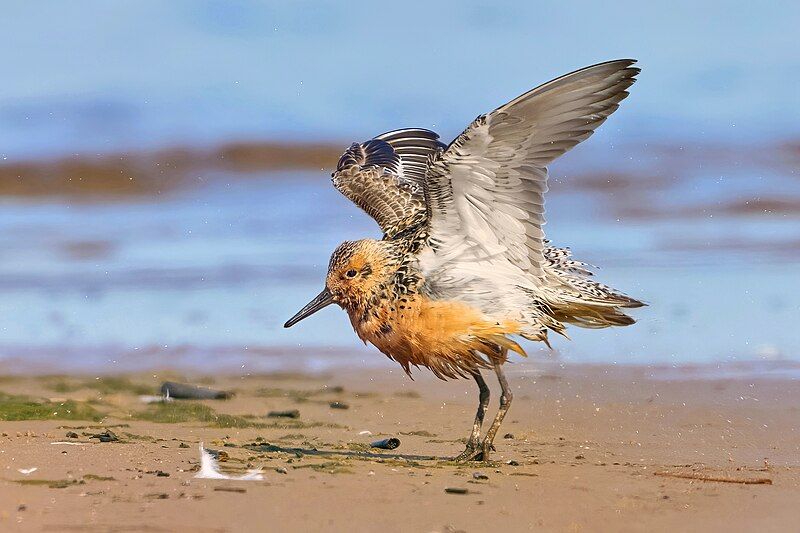 طائر صغير الحجم، السطح لونه رمادي رصاصي مع خطوط رقيقة بيضاء وسوداء، البطن بيضاء والمنقار أسود والساق صفراء قصيرة، يوجد على السواحل ينشط في أسراب.