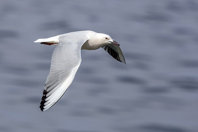 طائر شكله رشيق، الظهر وسطح الأجنحة رمادي، الرأس والجسم أبيضان، المنقار طويل مستقيم ونحيف أحمر داكن اللون، الساق لونها أحمر داكن، لون العين أصفر محاطة بحلقة حمراء، خلال فترة التزاوج الصدر والبطن لونها مائل للوردي، تنشط في السواحل والبحيرات نهارا.