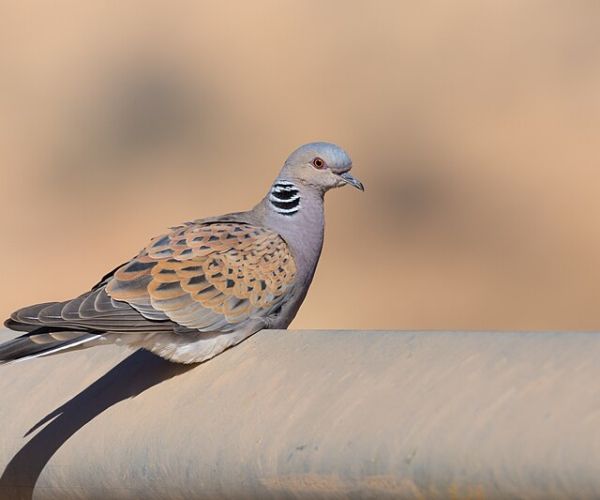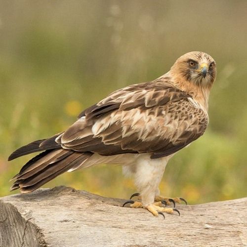 طائر مهاجر نشيط لونه بني داكن والرأس أبيض، الذيل يبدو طويل، ينشط في السهول والمناطق المكشوفة شبه الصحراوية، ويتغذى على الثدييات والزواحف والحشرات، تبيض الأنثى من 3-5 بيضات خلال فصل الربيع.