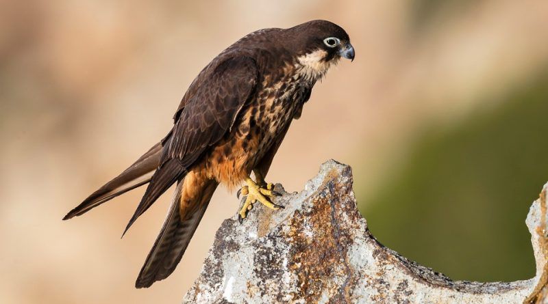 يتميز بجناح طويل ورقيق، الاجزاء العلوية بنية داكنة والأجزاء السفلية باهتة، العيون سوداء والأرجل صفراء، يتواجد بالقرب من الجزر والشواطئ الصخرية، يتغذى على العصافير والحشرات الطائرة، تبيض الأنثى من 2-3 بيضات.
