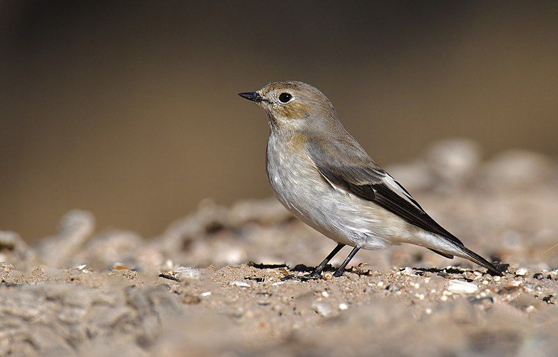 هو طائر صغير مهاجر من رتبة الجواثم, يظهر مؤقتاً في أوقات الهجرة، ريش الذكر أسود من الأعلى وأبيض من الأسفل والريش الجانبي للذيل أبيض ولديه شريط ابيض على الجناح وبقعة بيضاء صغيرة في مقدمة الرأس, الأنثى ألوانه رمادية ولديها شريط ابيض على الجناح وأجزائها السفلية لونها رمادي باهت، يتغذى على اليرقات والعناكب والذباب والبعوض والنحل والنمل ويتغذى على الفواكه وأحياناً بذور.