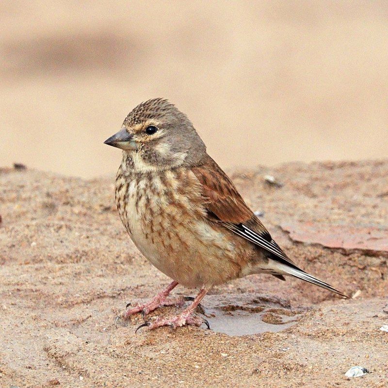 عصفور صغير الحجم من فصيلة الشرشوريات رتبة العصفوريات، لون ريش الرأس بني محمر والجسم يبدو بلون رمادي مع بقعة حمراء في مقدمة الرأس والصدر، وعادة ما يطير في مجموعات، يتغذى على العشب والبذور والحشرات، وتضع الأنثى ما بين 3 إلى 6 بيضات تقريباً.