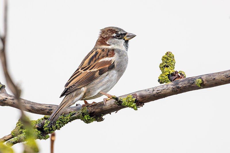 يعرف محليا بـــ اطوير الحاواشين من فصيلة الدوري، طائر مقيم طوال السنة وينشط بالقرب من المنازل الحديثة والقديمة، الذكر يظهر بلون بني وأجزاء سفلية باهتة ويوجد أسفل المنقار شريط أسود يمتد إلى أسفل الرقبة وشريط آخر يمر ليعبر العين أما الإناث رمادية اللون من جهة الظهر وباهتة من جهة البطن, تتغذى على بقايا أطعمة الإنسان وبعض الحشرات الصغيرة، تبني أعشاشها في الشقوق و الفتحات على جدران المباني وعلى فروع الأشجار القريبة من الأحياء السكنية وتضع الأنثى ما بين 4-6 بيضات