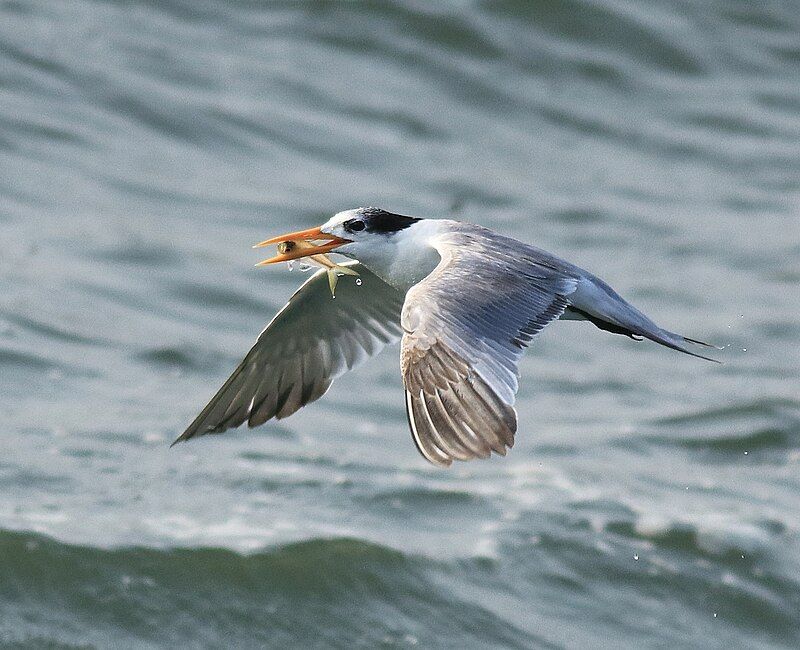 طائر ورشيق الساق قصيرة وسوداء، المنقار برتقالي طويل مستقيم، الظهر وسطح الأجنحة ذات لون رمادي باهت، لديه أعلى الرأس تاج سوداء، بقية لون الجسم أبيض، ينشط على السواحل، وغالبا بالشواطئ الرملية ومصبات الأنهار، تنشط نهارا في أسراب.