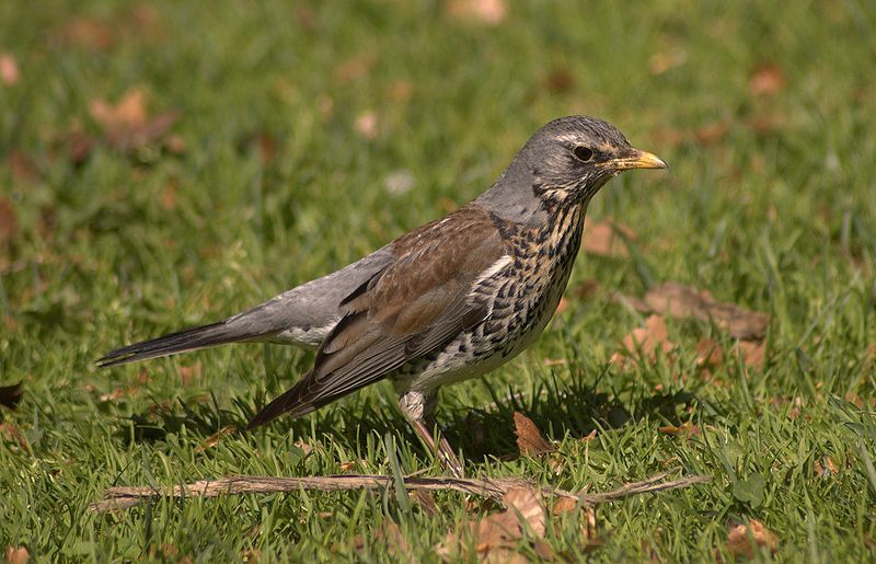 يتميز هذا الطائر بظهر بني وأجنحة ذات حواف رمادية وذيل أسود رمادي مزرق بطنه أبيض وصدره برتقالي فاتح مع بقع سوداء على جانبيه وصدرهـ يمكن رؤية شريط أبيض على الحاجبين في بعض الأحيان، يطير في مجموعات تصل إلى 200 فرد، يتواجد في الغابات المفتوحة والأراضي الزراعية والبساتين والحدائق.