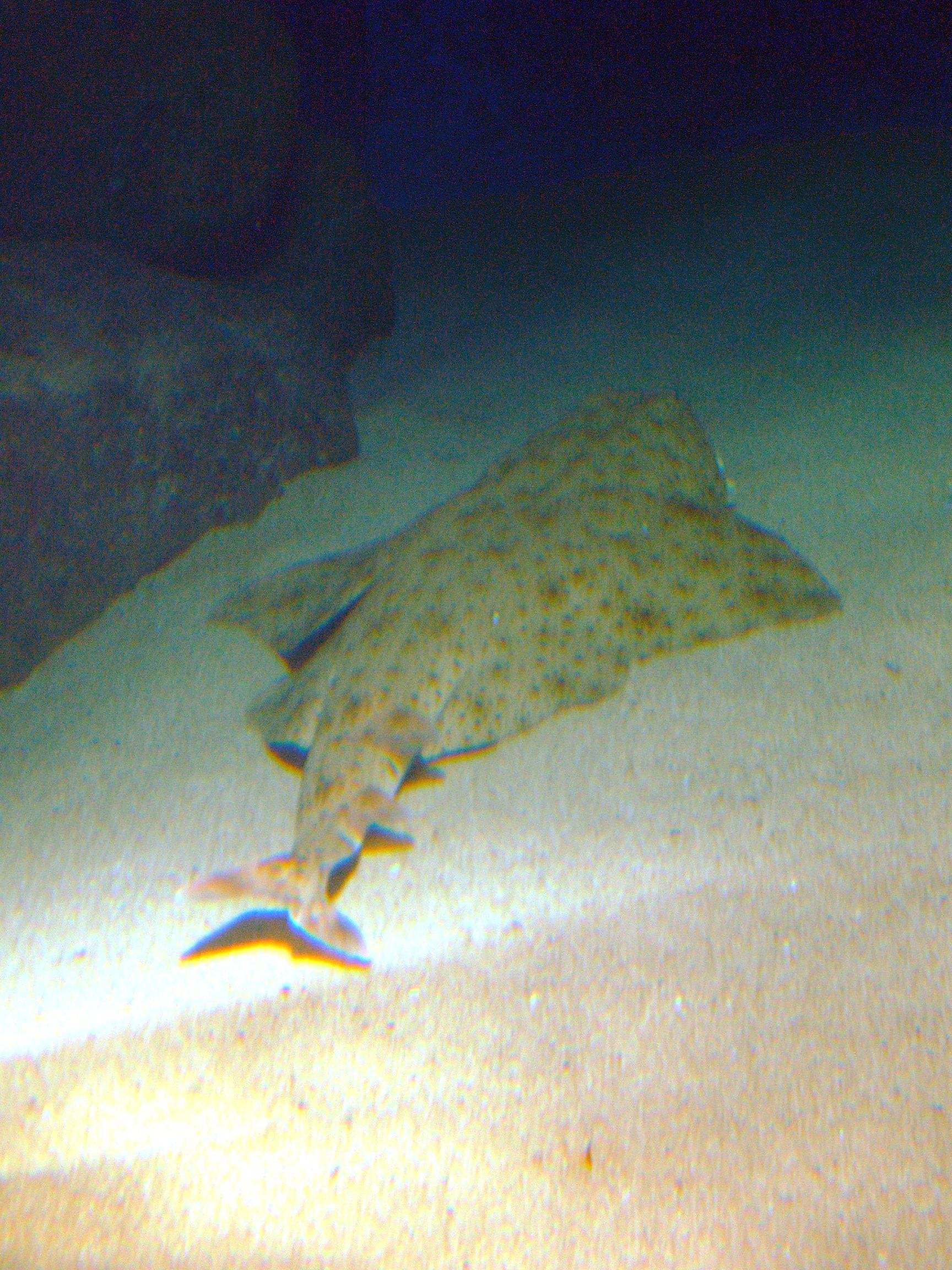 بني فاتح مع وجود زركشة غامقة منتشرة عشوائيا. الجسم مفلطح الرأس عريض، الفم كبير وأمامي العينان علويتان وأكبر من الفتحتين التنفسيتين، الأسنان حادة، قاعدة الزعنفة الصدرية تقريباً نصف طولها، خط من الأشواك القوية في منتصف الظهر، تصل نهاية الزعنفتين الحوضيتين إلى بداية الزعنفة الظهرية الأولى، بدون زعنفة شرجية.