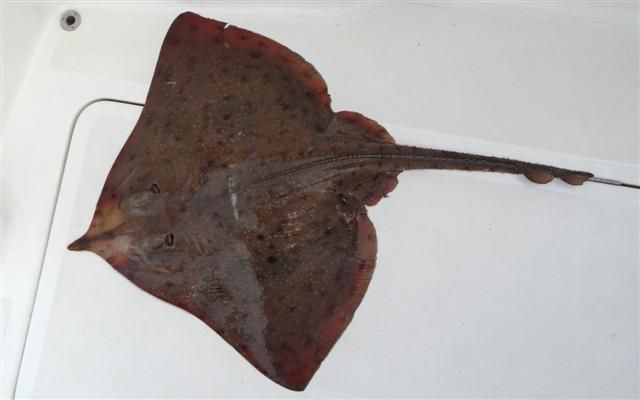 بني أحمر إلى الأزرق الرمادي من الأعلى مع وجود بقع فاتحة بيضاء من الأسفل مع حواف غامقة.الجسم مفلطح، الخطم طويل وحاد السطح العلوي أملس في الأفراد اليافعة، وغالبا مشوك في الأفراد البالغة مع وجود مساحات بدون أشواك على الزعنفتين الصدريتين، شوكة أمام وخلف العين في الأفراد اليافعة، ويزداد عدد الأشواك ويقل حجمها في الأفراد البالغة حوالي 15 شوكة في الخط الوسطي للذيل شوكة واحدة بين الزعنفتين الظهريتين، عادة صف من الأشواك القوية على كل جانب من الحافة السفلية للذيل الجانب السفلي أملس في الأفراد اليافعة ماعدا الخطم والحواف الأمامية.