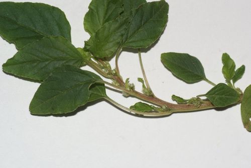 Amaranthus standleyanus Parodi ex Covas , it is an annual herbs; stems erect or decumbent, glabrous, pubescent toward inflorescence. Leaves petiolate; blade lanceolate, ovate or rounded-rhombic. Inflorescences mainly axillary, but also terminal. Pistillate flowers: sepals 5, spathulate. Fruit utricle, rugose.