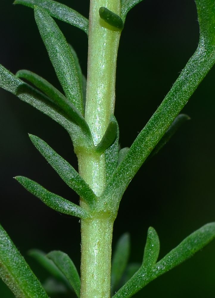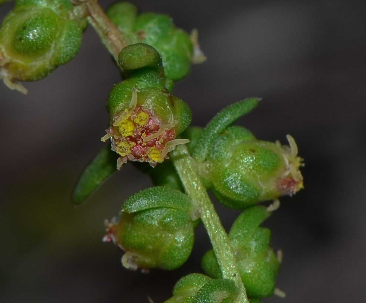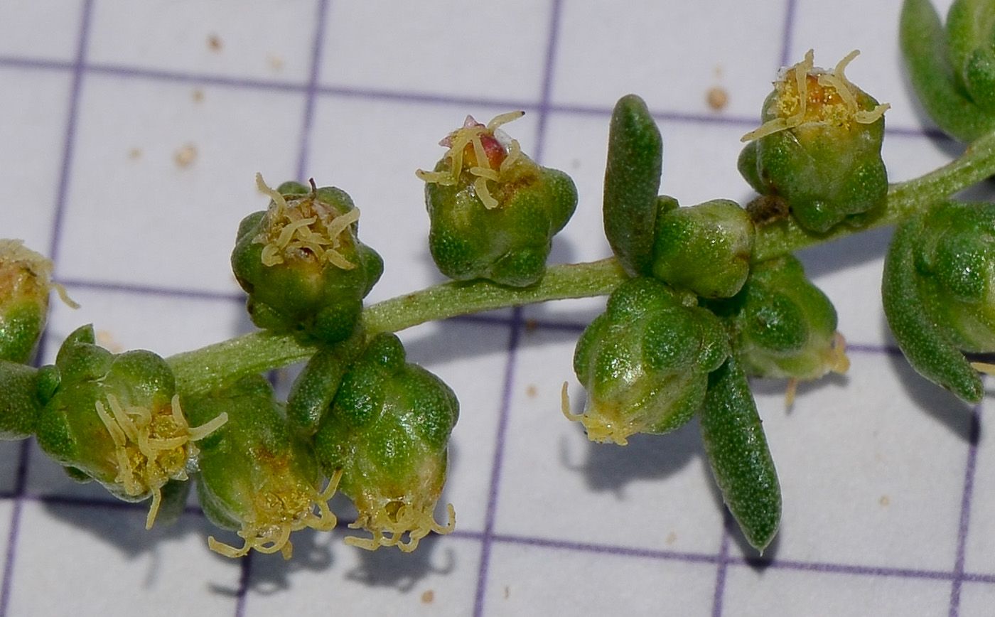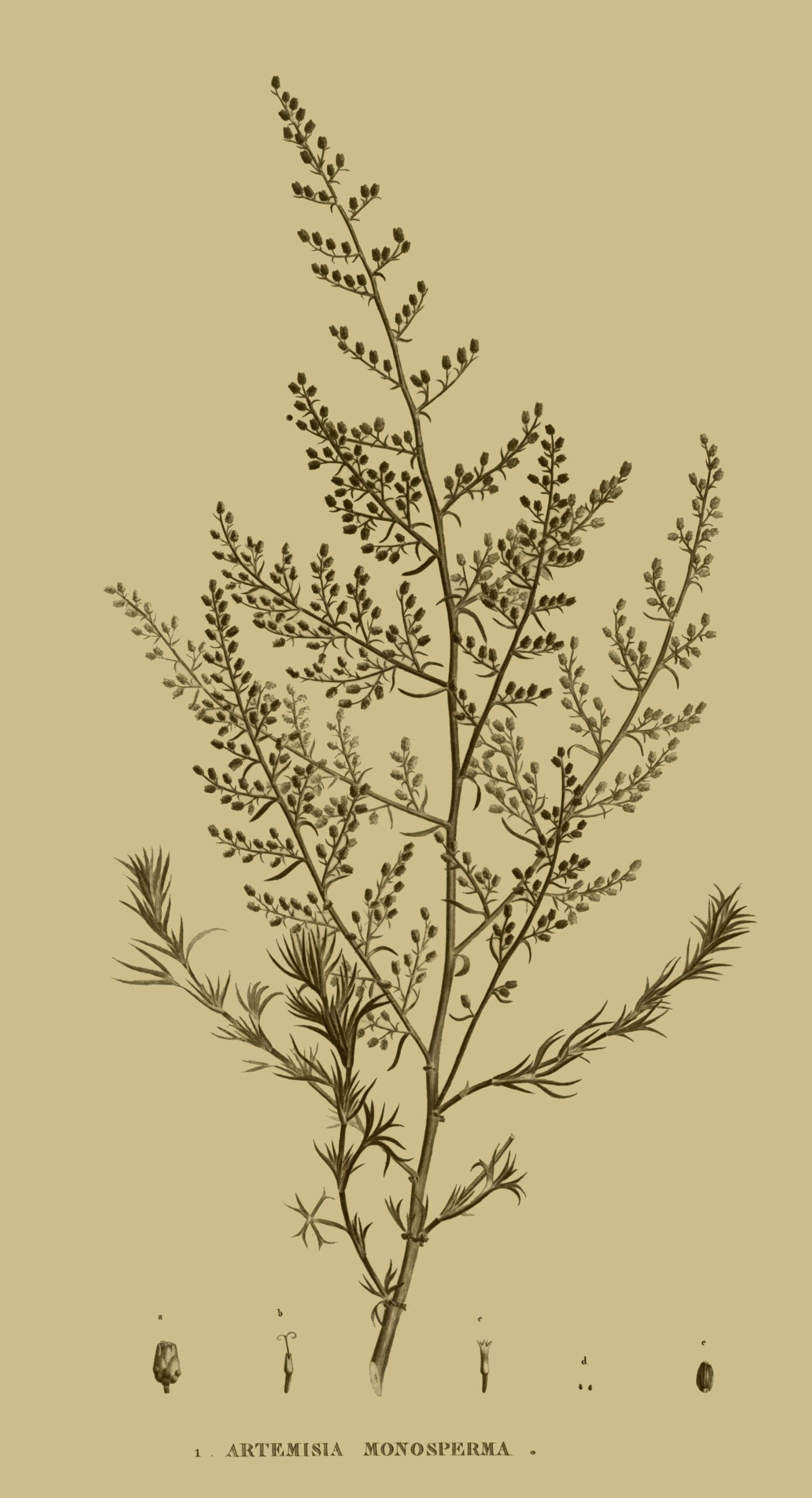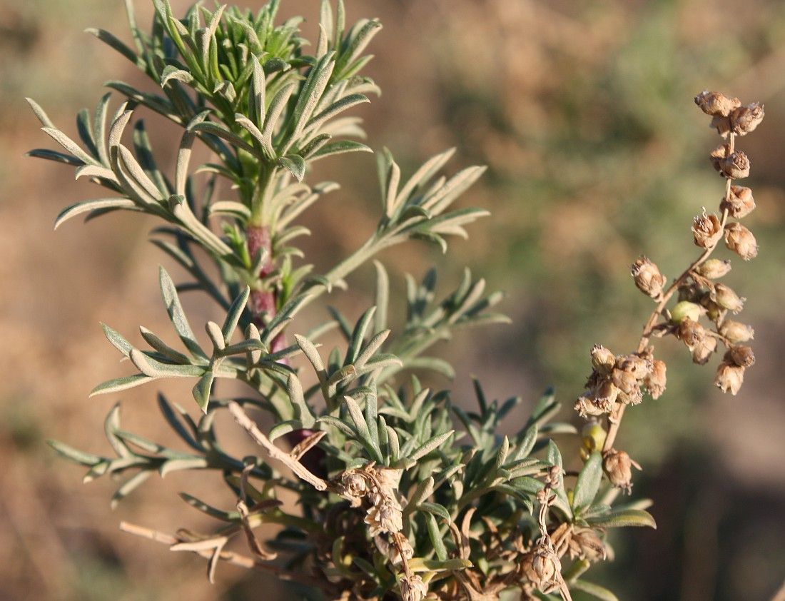 Artemisia monosperma Delile, it is a shrublet, up to 50-70 cm, green glabrous. Stems thick, ascending, diffuse or erect, ending in low, pyramidal, many flowered panicles. Leaves glabrous or sparsely hairy; those of sterile shoots pinnalisect, of stems short, usually clustered, simple, linear or trisect into linear lobes. Capitula c. 1 mm dim., crowded, shortly pcdunculate, nodding, ovate, 10-12-flowered. Involucre glabrous; outer involucral bracts glabrous; inner oblong. Receptacle glabrous. The flowers are Monoecious, yellow. Marginal 2 florets female, but normally only matures to form cypsela. Inner 8-10 florets functionally male. Fruits: Achenes.