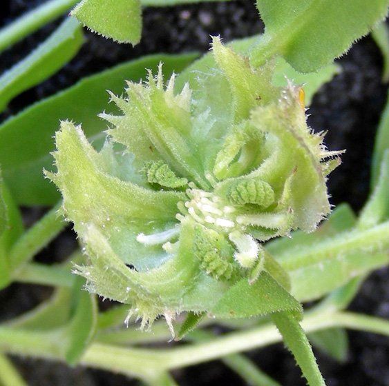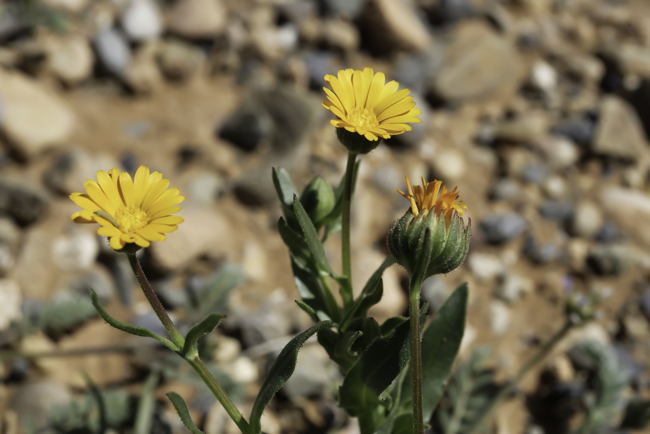 Calendula tripterocarpa Rupr., it is an annual herb, in habit much like Calendula arvensis L., but usually more slender, smaller, branched and diffuse. Stems and leaves sparsely glandular-hairy and occasionally with appressed hairs. Leaves often sinuate margined. Capitula 5-10 (-12) mm in diam., orange or yellow, concolorous; ligules c. 10 mm. equalling or slightly exceeding the involueral bracts; cypselas mostly dimorphic; outer cypselas beakless, broadly3-winged.