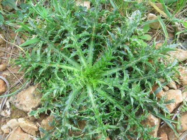 Carlina sicula Ten. //Infraspecifics: Carlina sicula ssp. mareotica (Asch. & Schweinf.) Greuter it is a sub glabrous perennial, up to (5-) 10·30 (-70) cm. simple or with few short branches arising from an underground rhizome. Lower part of the aerial stem usually covered with the bases of dry leaves. Lower leaves 40 x 70 x 20 mm (incl. spines), oblong, pinnatisect; lobes spiny toothed. Mid-cauline leaves 60-80 x 25-35 mm (incl. spines), oblong-lanceolate, pinnatifid to pinnatisect with lobes and margins spiny-toothed. Capitula 2-4, in a crowded terminal cluster, or 1-2, sub sessile in leaf axils lower-down,15-40 mm in diam. (exclude, the outermost involueral bracts). Outer involucral bracts 25-35 (-80-100) mm long, erecto-patent, coriaceous and somewhat clavateat the bases and rest similar to the upper cauline-leaves. Middle involucral bracts 8-10 (-12) x 2.5 mm, oblong, herbaceous with narrow scarious margins, finely apiculate, arachnoid tomentose on the back in the distal halves. Innermost involucral bracts 18-22 x 2-2.25 mm, oblong, exceeding the florets, parts projecting above the florets silver white above, white or purplish beneath, apiculate, margins finely ciliate. Florets yellow. Cypsela 3 mm; pappus c, 9 mm.