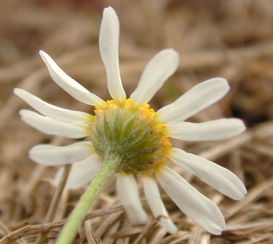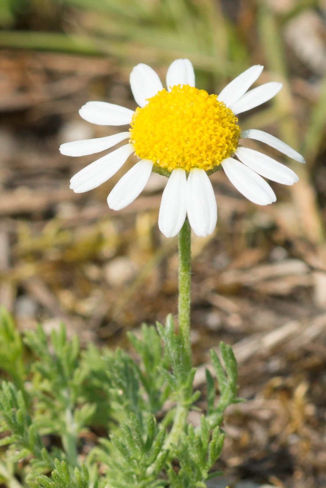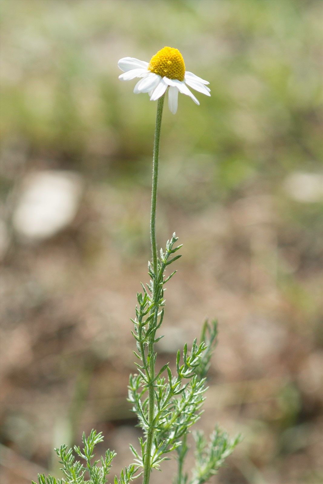 Chamaemelum nobile (L.) All. / Homotypic Synonyms: Anthemis nobilis L., it is an annual or biennial, villous. Stems 6-40 cm, erect or ascending, simple or branched. Lower and middle leaves generally bipinnate; upper leaves unipinnate; lobes linear. Peduncles 0.5-1.1 cm, not thickened at the apex. Flower heads solitary. Involucre 45 x 7-9 mm. Involucral bracts obovate with a broad hyaline margin. Receptacle slightly conical. Interseminal bracts obovate, similar to the involucral bracts, slightly villous. Flower heads radiate or discoid. Flowers hemiligulate, generally fertile, with a limb 4-11 mm long, white with a yellowish base; The yellow flosculose florets, with a tube 1.5-2.5 mm long and a base decurrent on both sides of the ovary and a limb of c. 1.3 mm, campanulate. Achenes 1.2-1.6 mm long, ovoid, slightly dorsiventrally compressed, with 3 ribs on the ventral face.