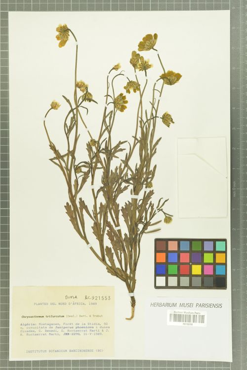 PAMPANINI, R. (1931). Prodromo della Flora Cirenaica. – : 446 – under: Pyrethrum trifurcatum (Desf.) Willd. https://bibdigital.rjb.csic.es/records/item/14218-prodromo-della-flora-cirenaica