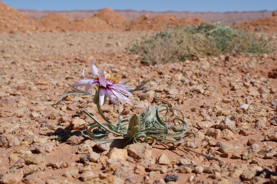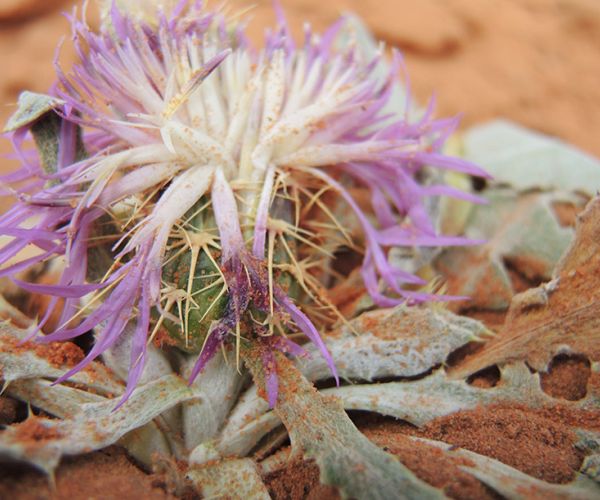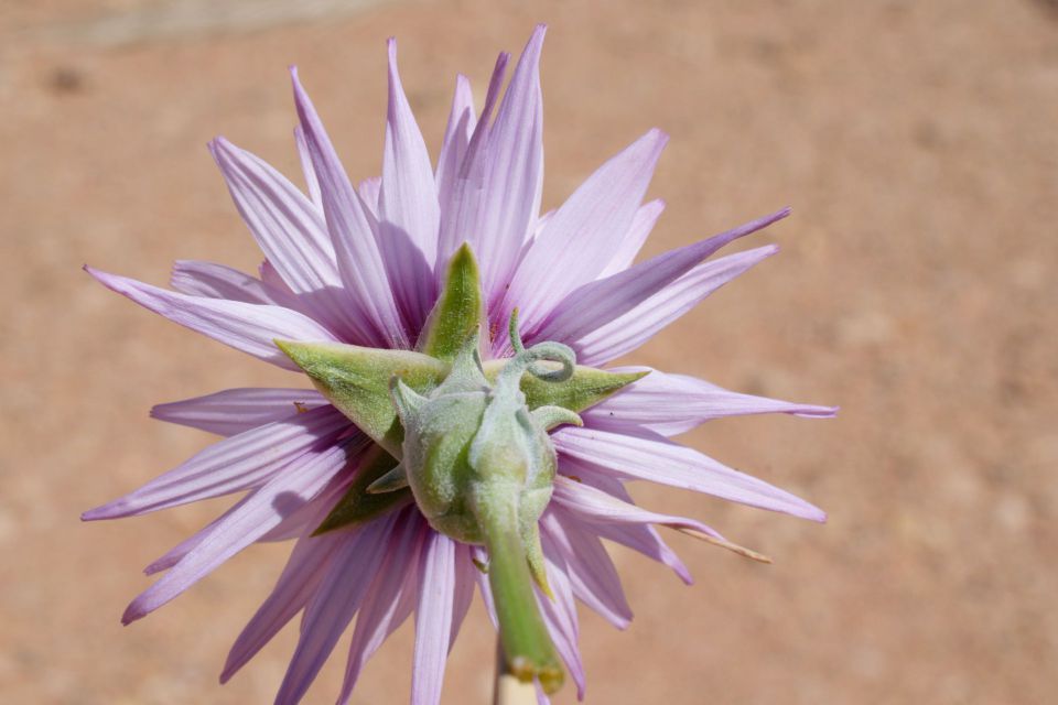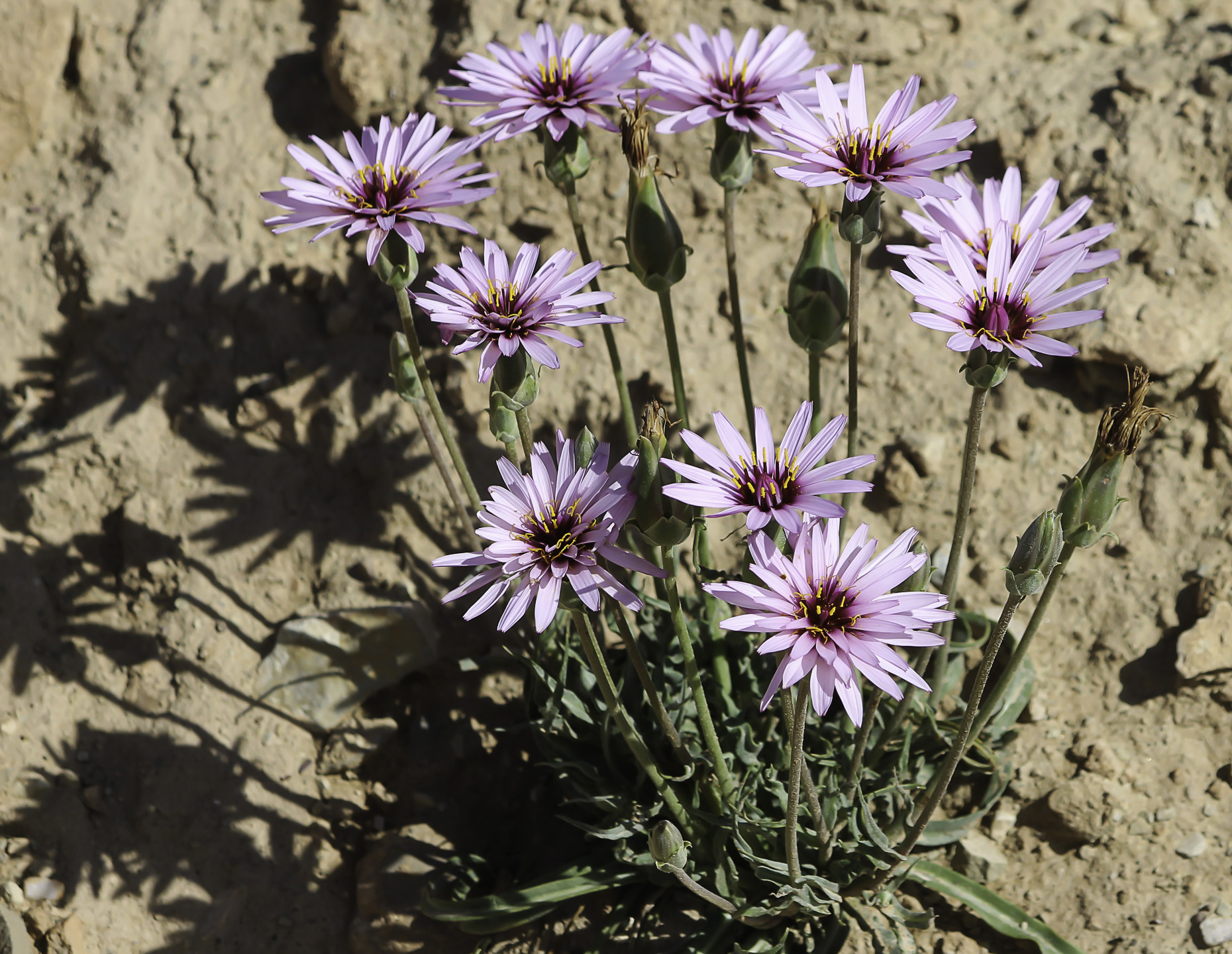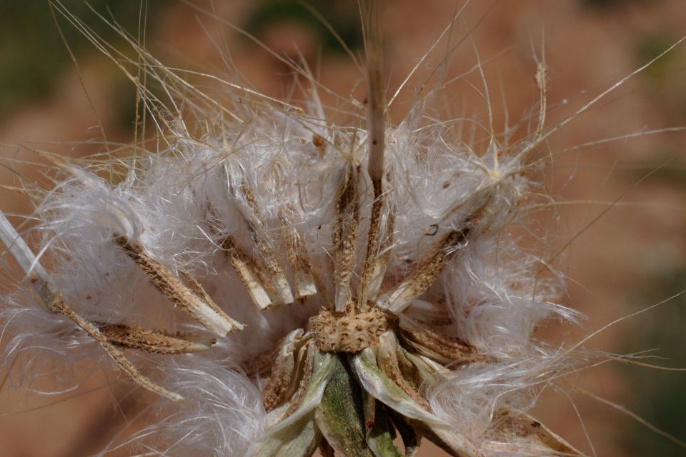 Pseudopodospermum undulatum (Vahl) Zaika, Sukhor. & N.Kilian /  Homotypic SynonymsScorzonera undulata Vahl, it is a perennial, up to (5-) 7-25 cm tall, sub scapigerous. glabrous or tomentose, hairs when present usually restricted in the lower part of the stem. leaves and below the capitulum on the peduncles, simple, straight or wooly, white to dirty brown. Root-stock vertical, 0.7·1.5 (-2) cm in thickness, tuberous-incrassate, oblong-cylindrical, dark-brown, not fibrous above; sub-terranean part of the plant usually covered with the remains of previous year leaf bases; leaf bases whitish-yellow to straw-yellow, becoming fiber like. Stems solitary, simple or branched near the base, branches monocephalic. Basal leaves 30-150 x 2-7 mm. linear to linear-Ianceolate, entire, flat or margins sinnuate. Cauline leaves similar but smaller. amplexicaule. Involucre 15-25 mm long. cylindrical-campanulate. Involucral bracts 3-4 rowed. broadly ovate, acute, slightly hairy to glabrous. Ligules 11̸2-2 times as long as the involucre, purplish or violet (rarely white). Cypselas homomorphic. (marginal ones slightly curved. inner ± straight), 9-11 (-12) x 0.75-1 mm. cylindrical-ellipsoid, with ribs scabrid or rugose to squamate, otherwise glabrous, rarely hairy, pale brownish to brown; basal part soft, sponge. paler in colour, c. 1/5 as long as the rest of the cypsela; pappus sessile with a distinct, brown ring at its base, dirty white, setae of two types; some plumose throughout, persistent, as long as the cypsela; others plumose in the lower parts and scabrid above, brittle. usually exceed the length of the cypsela.