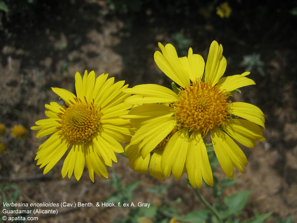 https://powo.science.kew.org/taxon/urn:lsid:ipni.org:names:30147294-2, https://www.ipni.org/n/30147294-2, https://www.worldfloraonline.org/taxon/wfo-0000043888, https://www.gbif.org/species/3147913, https://africanplantdatabase.ch/en/nomen/specie/139660/verbesina-encelioides-cav-benth-hook-f-ex-a-gray, https://www.floraofqatar.com/verbesina_encelioides.htm, https://www.ksanature.com/plants/verbesina_encelioides/, https://www.invasive.org/browse/subinfo.cfm?sub=6590, https://gobotany.nativeplanttrust.org/species/verbesina/encelioides/